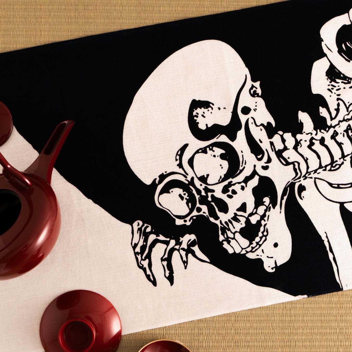 骸骨や怨念が集まって巨大化したとされる「がしゃどくろ」を大きく描いた迫力のあるデザインです。歌川国芳の『相馬の古内裏』にも描かれているので浮世絵がお好きな方にもおすすめです。