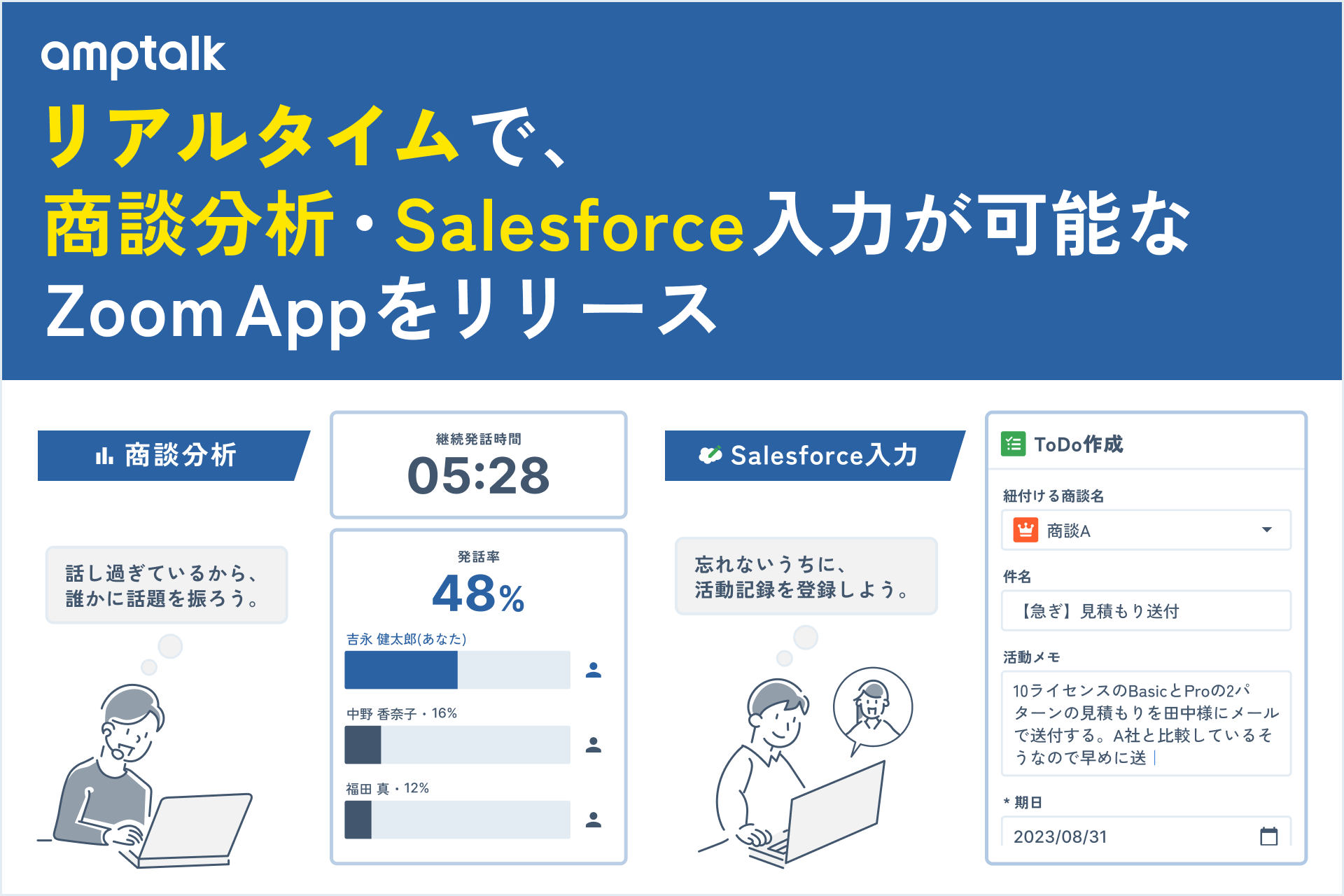 商談分析ツール「アンプトーク」、リアルタイムで商談分析、Salesforce入力が出来るZoom Appをリリース