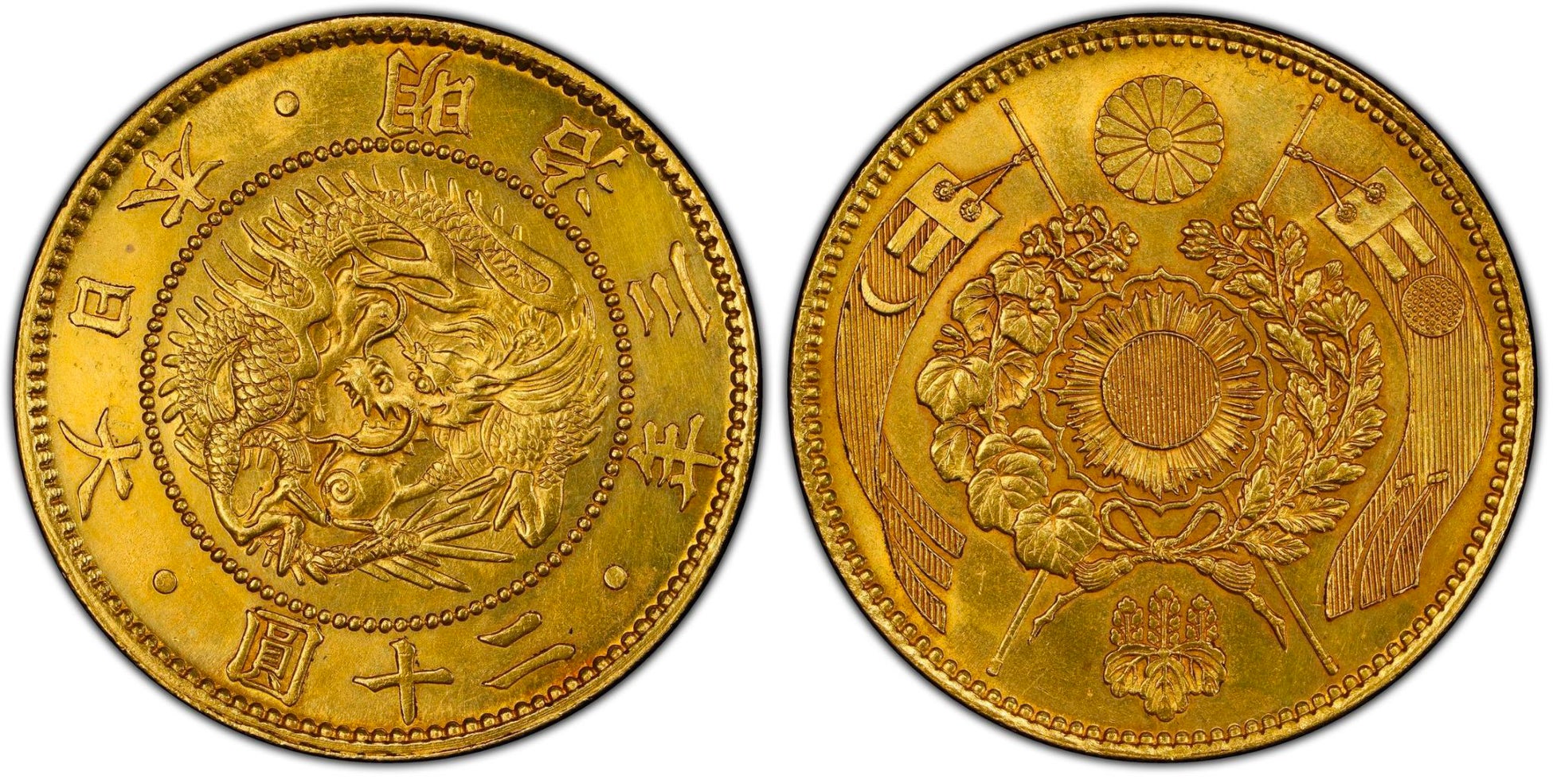 明治3年(1870) 日本 旧20円金貨 日本貨幣商協同組合鑑定書付 PCGS Cleaned-UNC Detail