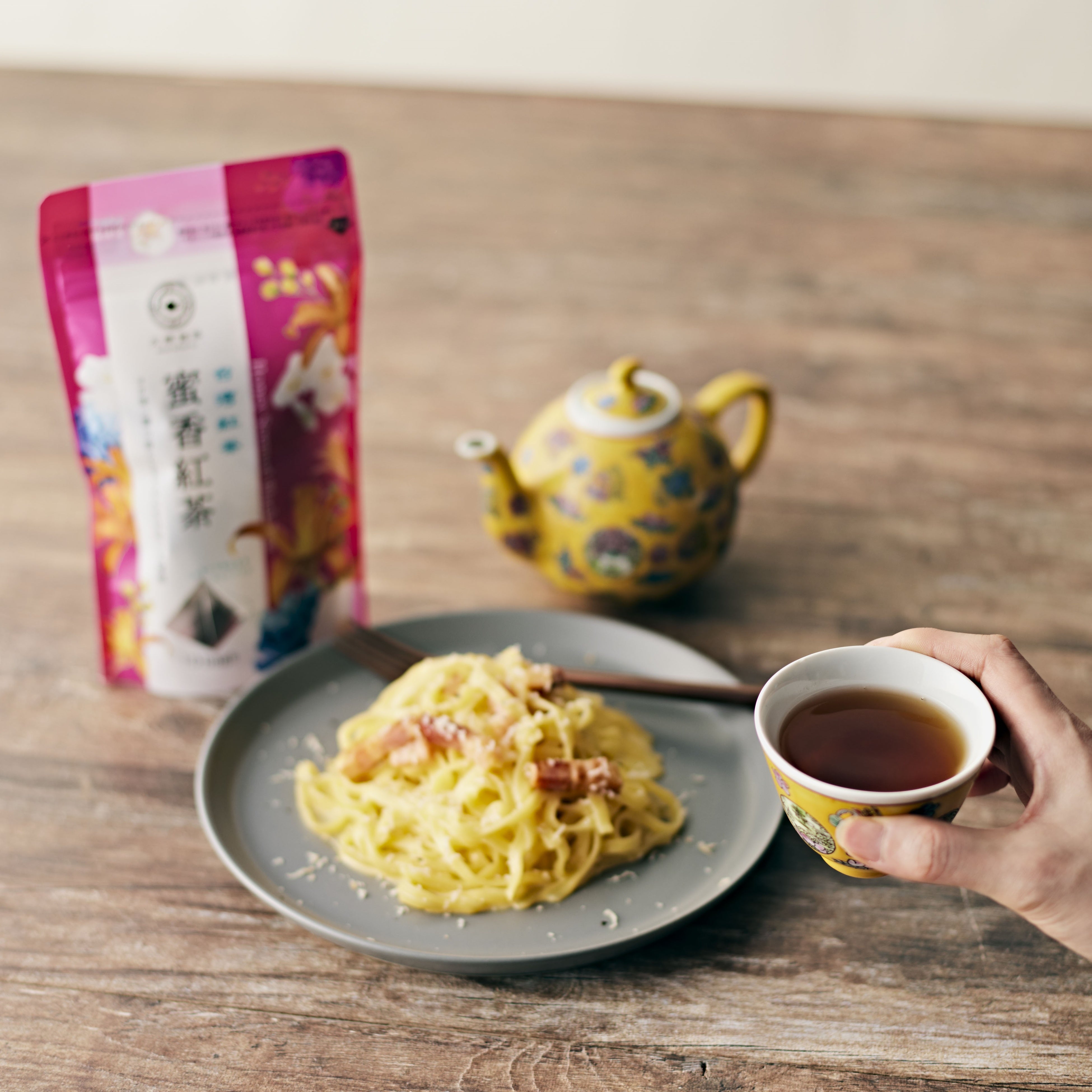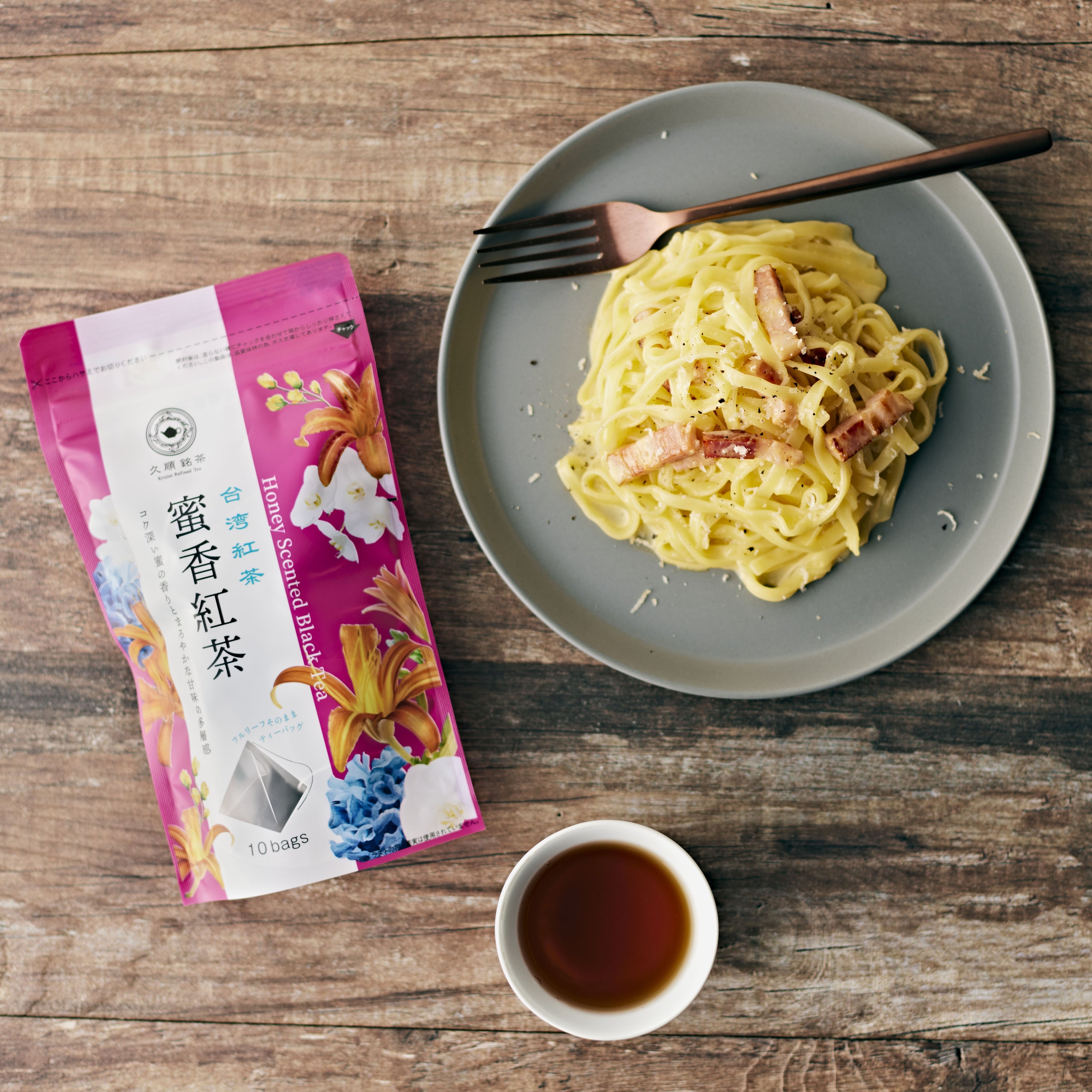 フルーティーな蜜香と濃厚な紅茶の香りを持ち、まったりした素朴なコクと甘みの余韻が残る蜜香紅茶は、単体で飲んでいただくのはもちろん、風味のバランスが良いためどの料理にも合わせやすく、食事やお菓子と合わせてお楽しみいただけます。特にチーズやバター、牛乳を使う食事やスイーツとの相性がぴったりで、カルボナーラやマドレーヌなどに合わせるのがおすすめ。