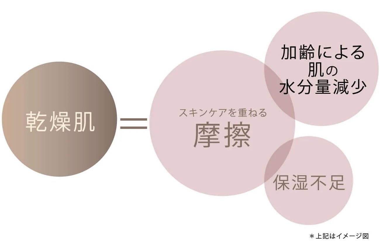 年齢を重ねるにつれ、数々のスキンケア製品を試しても、「肌悩み」が解消されない現象はなぜ起こるのでしょうか? 株式会社メディファインはこの矛盾に真正面から取り組んできました。エイジング世代の肌悩みは、その多くが肌の水分量が減少することに起因します。そのため、肌悩みの根本を解消するには「肌の保湿」が必要です。技術や成分が日々進歩しているはずなのに、なぜ多くの人々が悩みを抱えているのか? 乾燥肌を解消するには、単にうるおいを与えるだけでは不十分なのか? そこで、日々私たちを取り巻く「摩擦」に着目しました。マリエランは、エイジング世代の肌に適した保湿成分を厳選し、できる限り摩擦を抑えた「摩擦レス」。