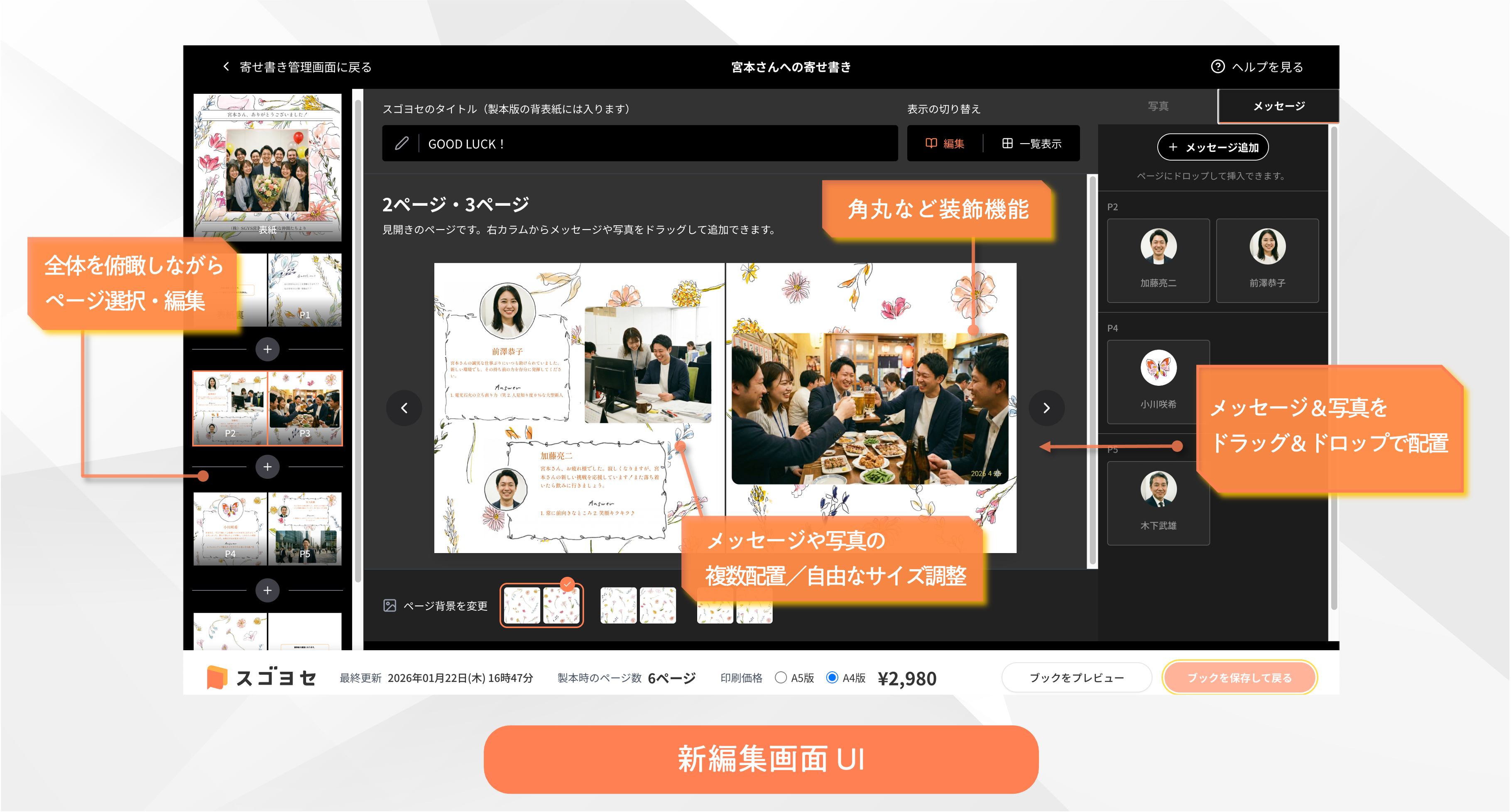 初めてスゴヨセを利用する方でも安心して編集できる環境を整えることで、3月の送別・卒業シーズンに向けて、より多くの方がスムーズに利用できる体験を提供します。