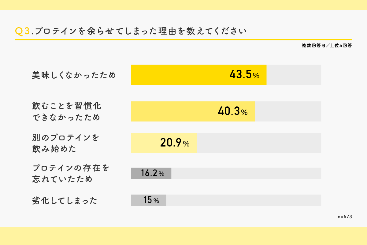 プロテインを余らせてしまう理由第1位は「美味しくなかったため」