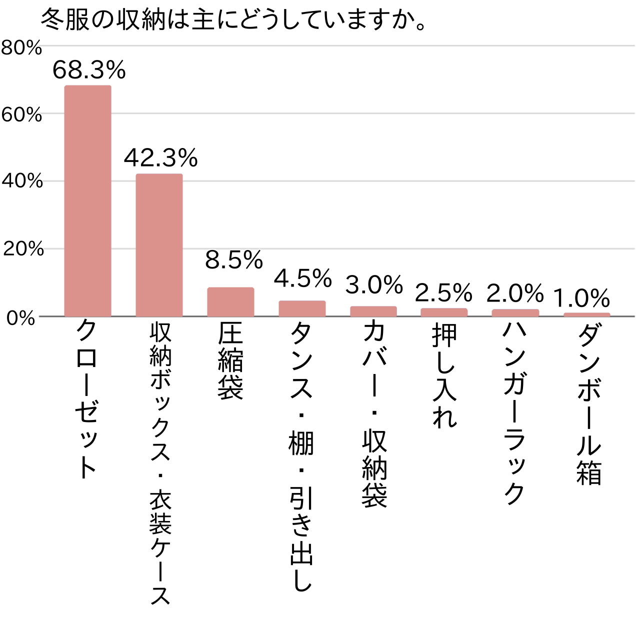 アンケートでは次に、冬服の収納場所・収納方法について尋ねてみました。