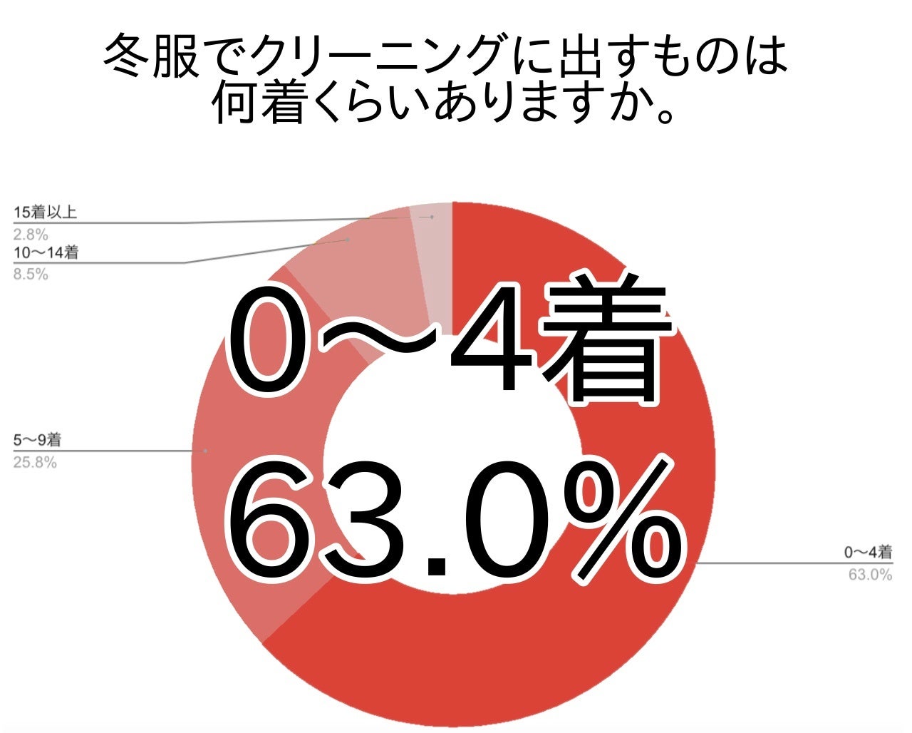 冬服は大きいもの・厚いもの・自宅で洗えないものが多い傾向にありますが、クリーニングに出すのは何着程度の方が多いのでしょうか。アンケート回答者にクリーニングを利用する着数を尋ねてみました。