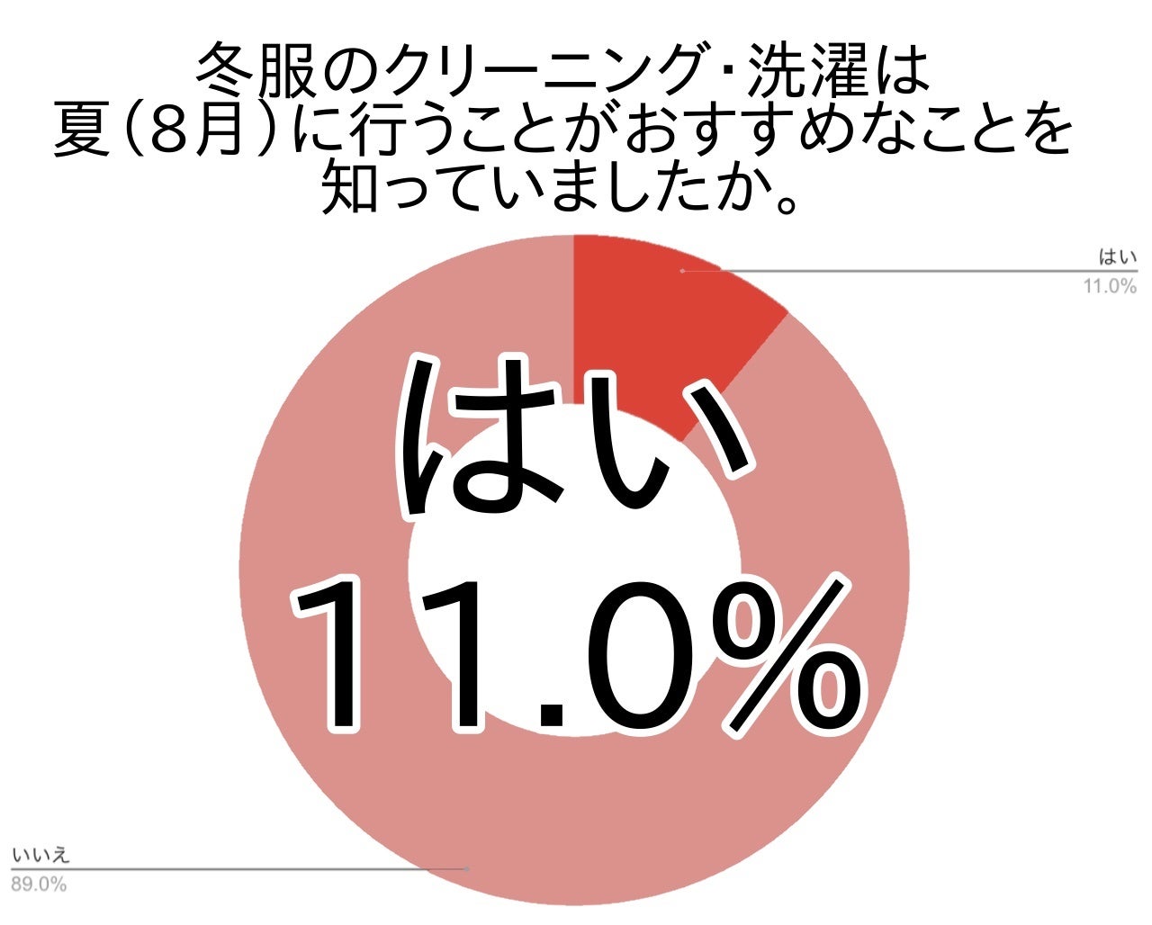 冬服のクリーニング・洗濯を夏に行うと良いことを知っていたと答えた方は1割強(11.0%)でした。