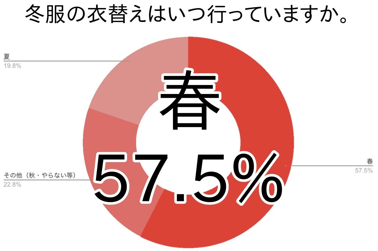 今回の調査では、冬服の衣替えを春に行なっていると答えた方が57.5%で多数派という結果になりました。