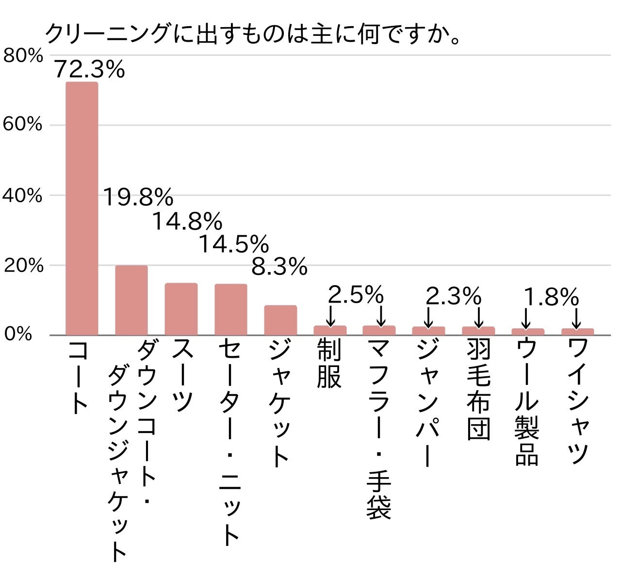 また、具体的に何をクリーニングに出すのかを尋ねました。