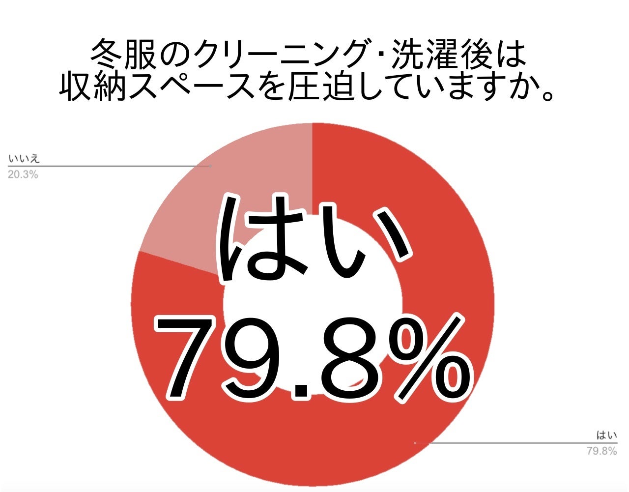冬服がクリーニング・洗濯後に収納スペースを圧迫していると答えた方は約8割(79.8%)でした。