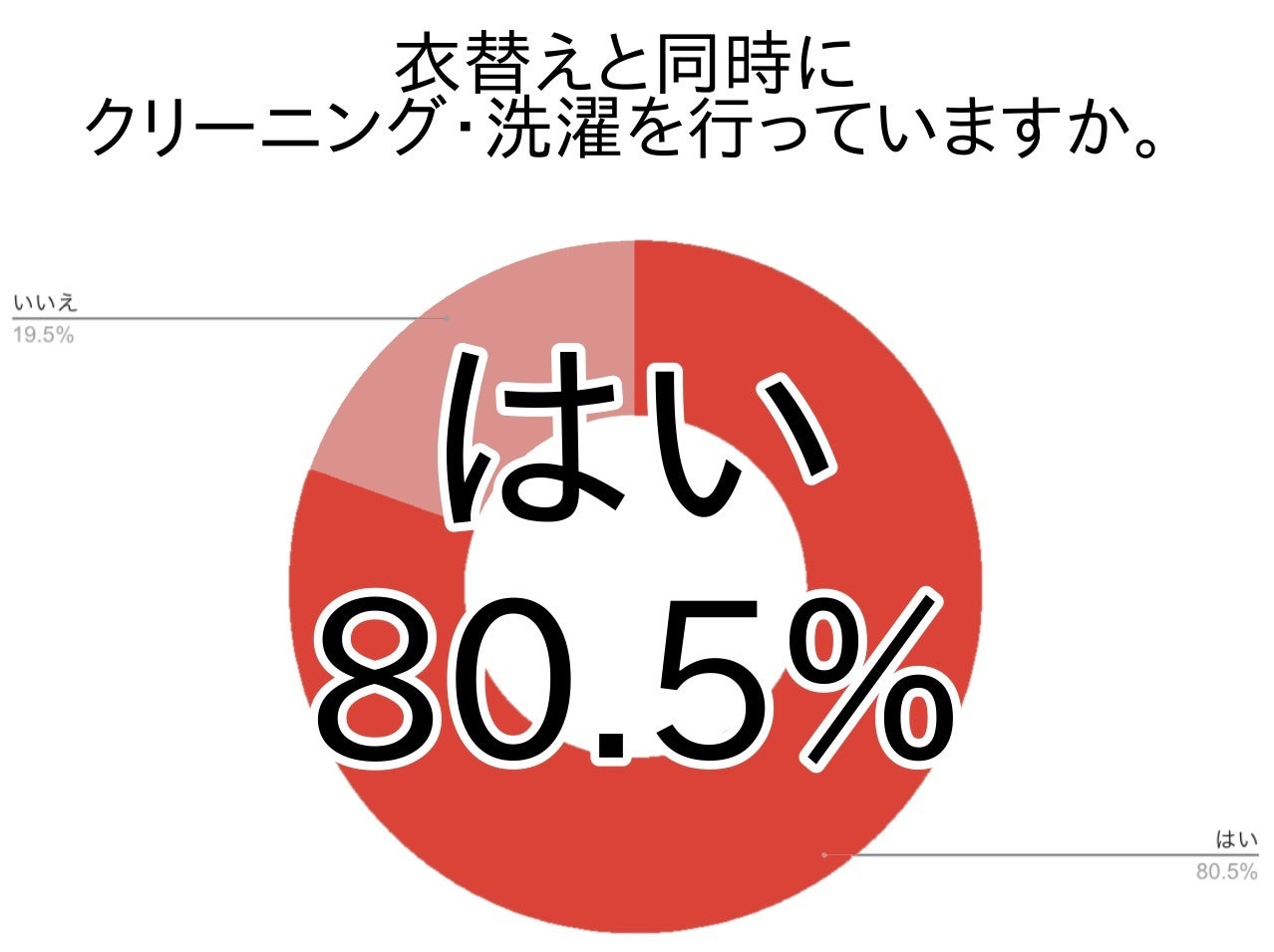 アンケートでは約8割(80.5%)の方が衣替えの際にクリーニング・洗濯を行っていると回答しました。