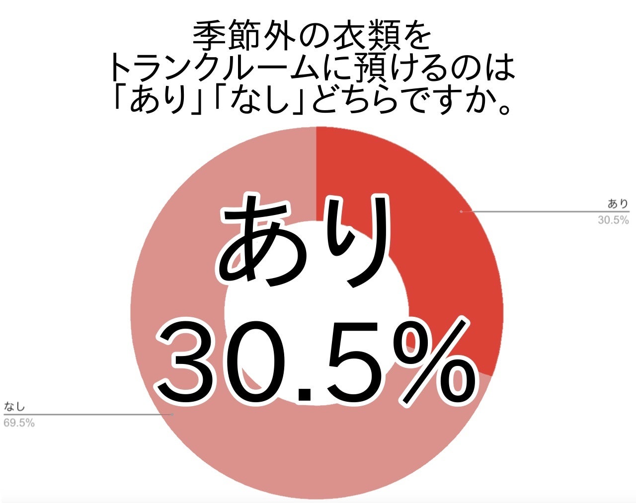 今回のアンケートでは季節外の衣類をトランクルームに預けることを良い方法と判断したのは30.5%でした。