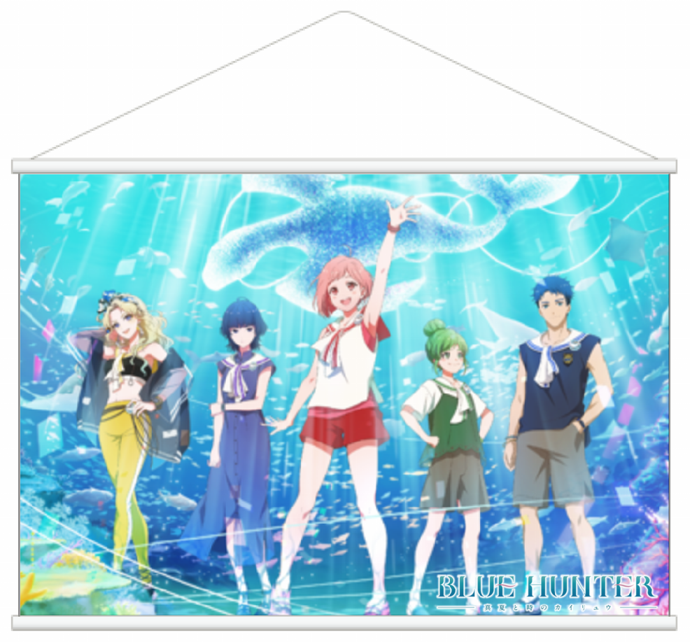 メインキャラクターであるチームベルーガの日下部真夏、真行寺沙羅、須藤藍白、漣燈子、松宮陸が揃った『BLUE HUNTER 真夏と時のカイリュウ』キービジュアルをタペストリーにしました。