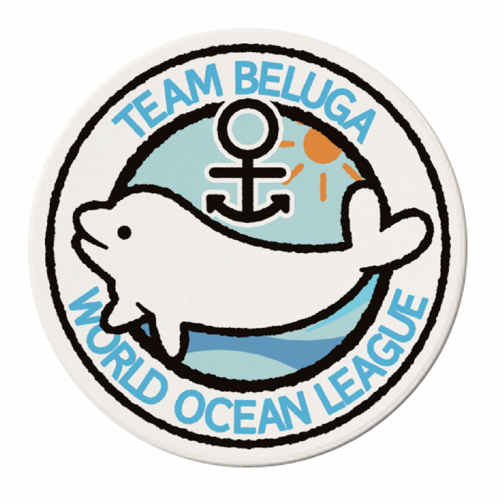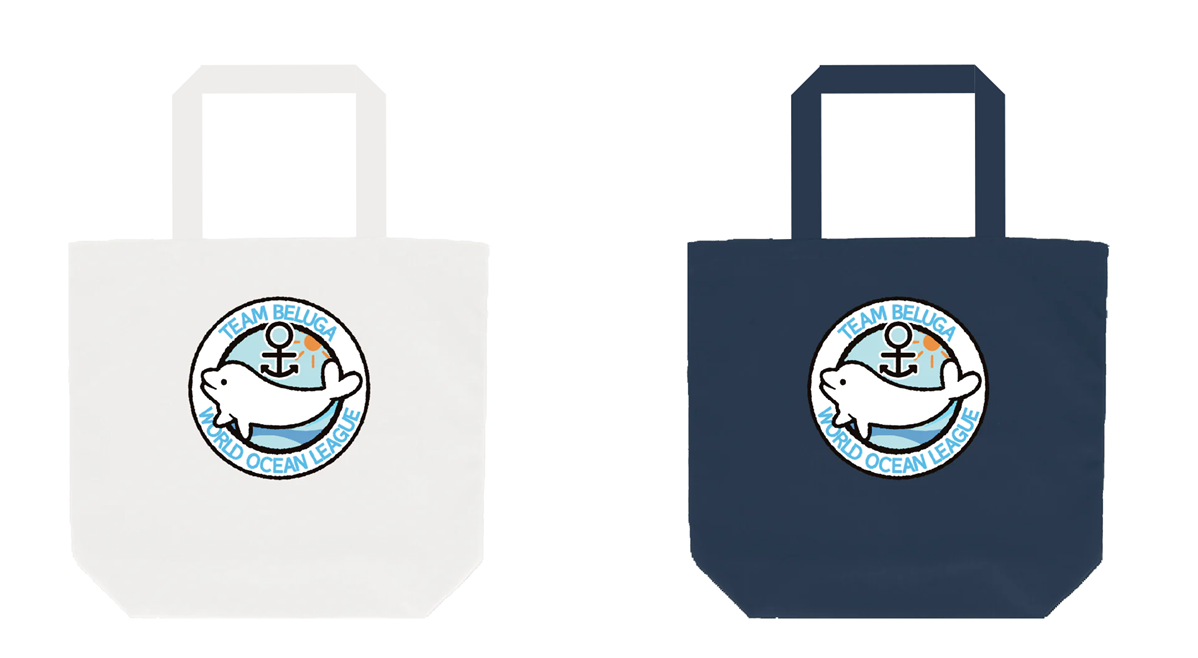 チームベルーガのロゴをデザインしたオリジナルトートバッグを、白と紺の2色でご用意しました。