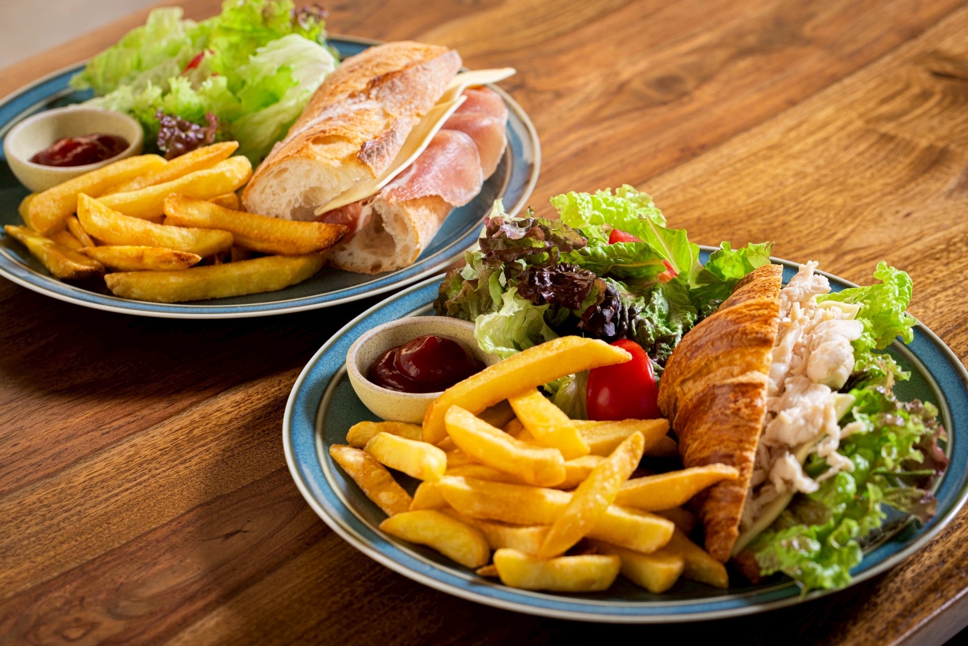クロワッサンサンドorバゲットサンド、フリッツ、サラダ