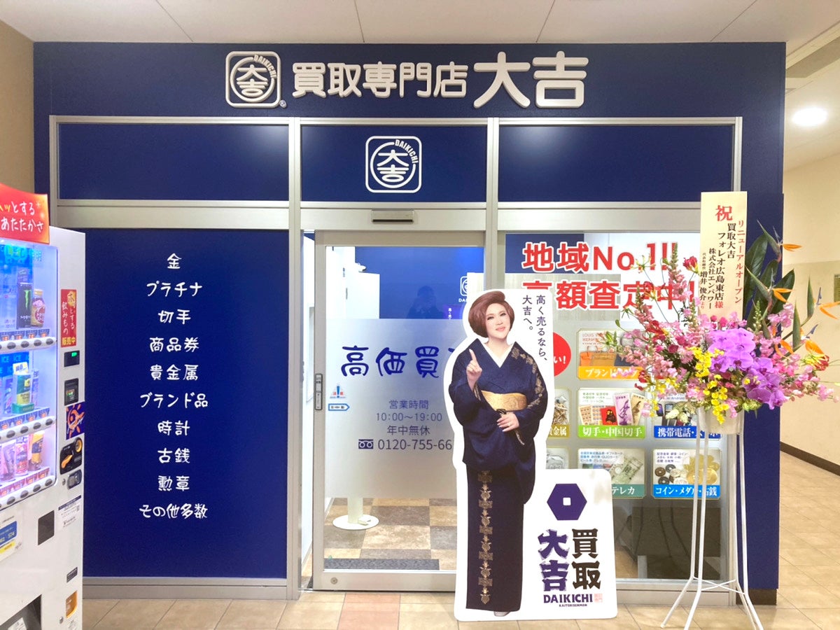 買取価格満足度No.1の「買取大吉」を運営する株式会社エンパワー(本社:東京都新宿区、代表取締役社長:増井 俊介、以下、エンパワー)は、広島市にある「買取大吉 フォレオ広島東店」を2月7日(月)にリニューアルオープン。すべての方が気軽に立ち寄れる買取専門店を目指すべく、「ご縁の良い買取、大吉。」をコンセプトに掲げ、当店にしかできないサービスを提供いたします。