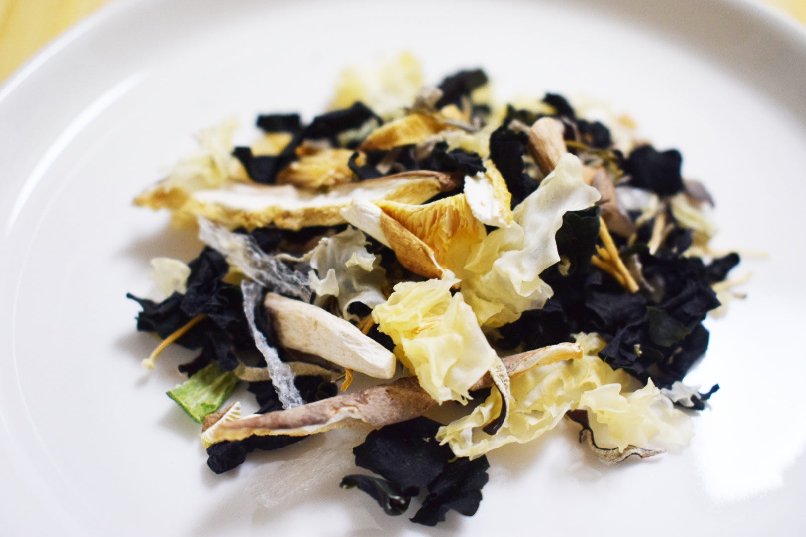 ・具材:わかめ、黒きくらげ、白きくらげ、椎茸、めかぶ、しめじ、えのき、おくら、寒天、とろろ昆布