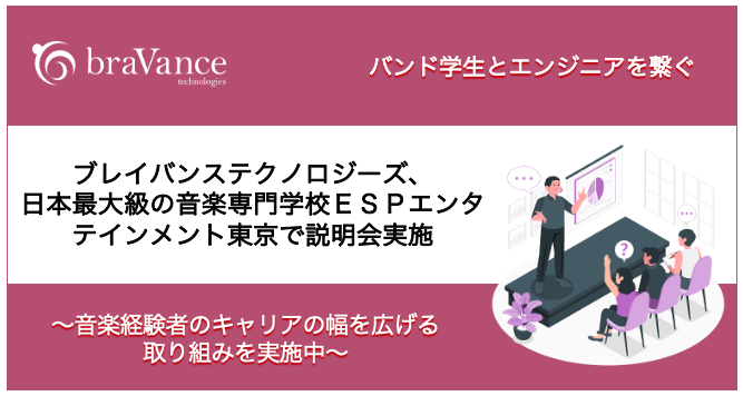 バンド学生とエンジニアを繋ぐ!ブレイバンステクノロジーズ、日本最大級の音楽専門学校ESPエンタテインメント東京で説明会実施