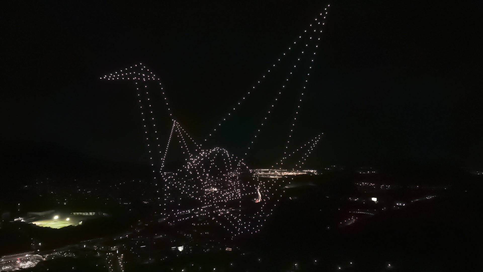 レッドクリフ、1000機のドローンで広島の夜空に折り鶴を描く