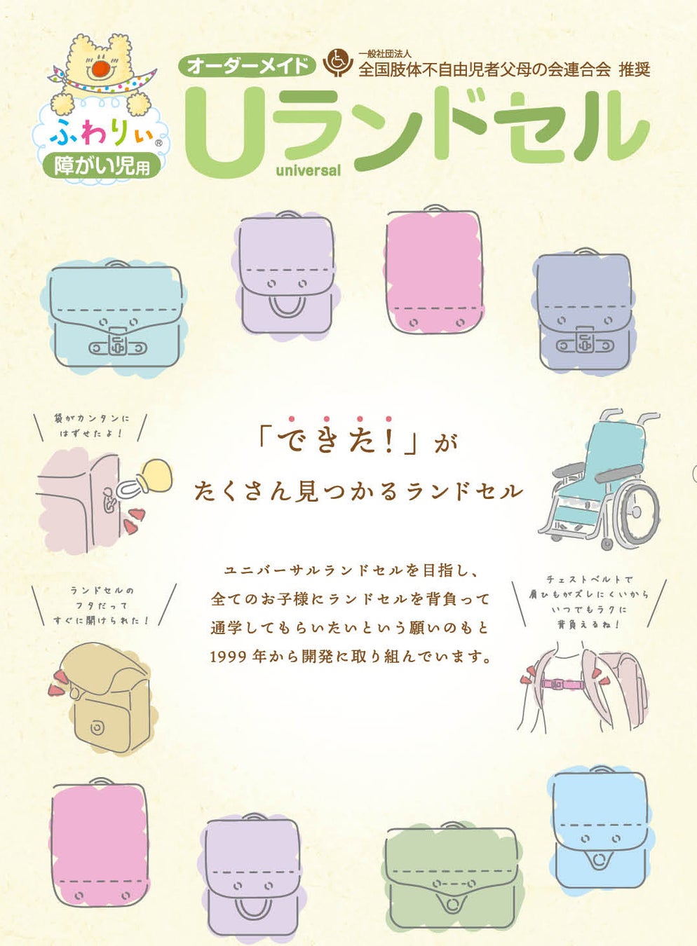 すべての子どもたちに、背負う喜びを!「ふわりぃ障がい児用オーダーメイドUランドセル」ご注文受付中!!