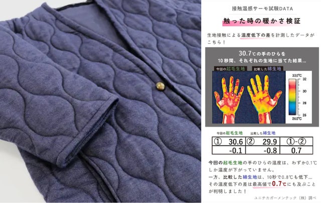 コットンフランネル生地で接触温感アップ!~起毛×発熱わたで薄着でも暖かい~