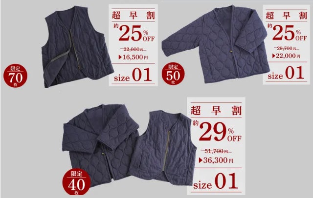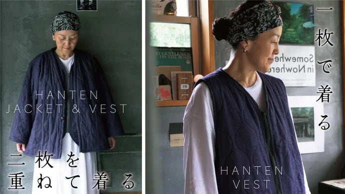 2023年秋冬のプロジェクト『紡々(つむぎ)ガーゼの半纏ジャケット』をベース にした改良版「半纏ジャケット」と、新たに企画した「半纏ベスト」の2点が登場。