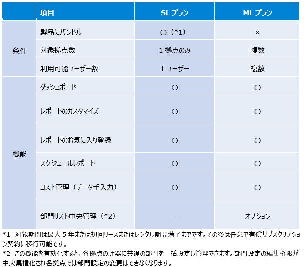 SLプラン:単一拠点(Single Location)用のブラン。取得可能なデータは対象の計器設置場所一か所分のみ。SendProシリーズ郵便料金計器をご導入の際に自動的にバンドル(対象期間は最大5年または初回リースまたはレンタル期間満了まで。その後は任意で有償サブスクリプション契約に移行可能)