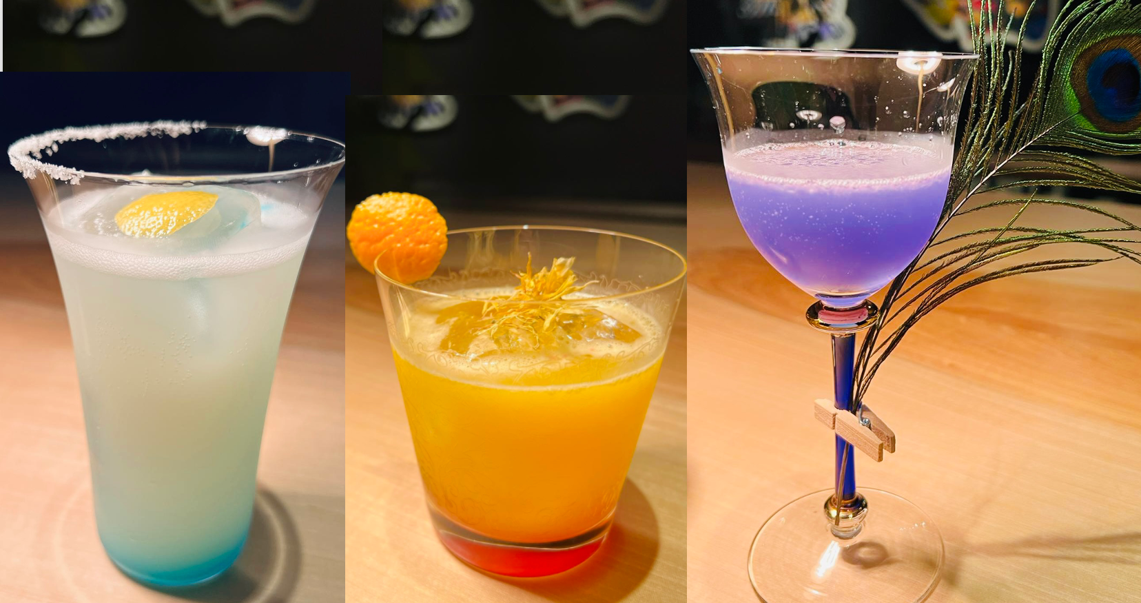 フレッシュフルーツカクテルやクリエーションカクテルを得意とされていますが、一夜限りのスペシャルカクテルとして、カラフルで美しく、思わず心が躍るようなシンガニカクテルを3種類ご用意いただきました。