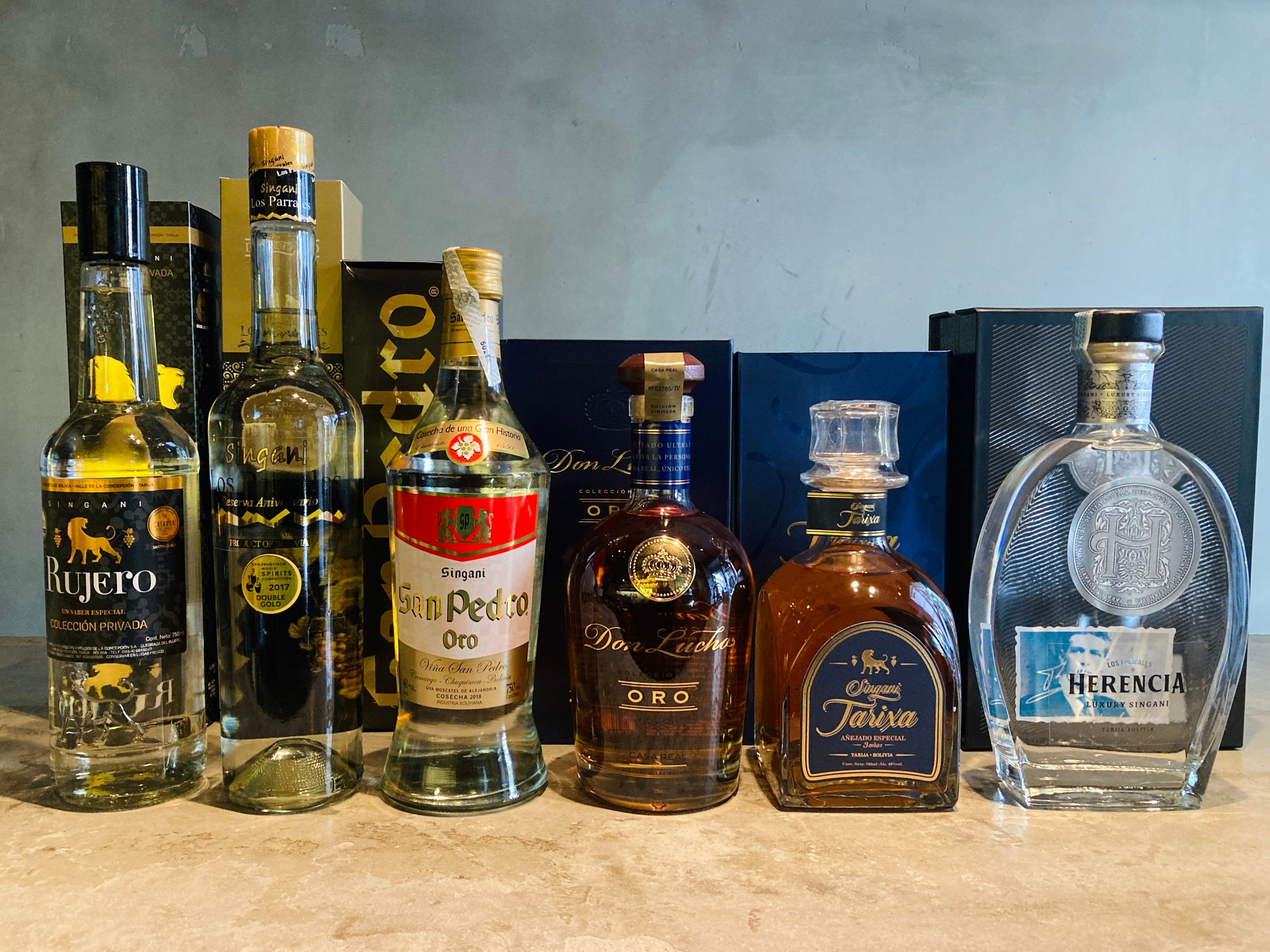 「シンガニ」はボリビアで造られる蒸溜酒で、マスカット・オブ・アレキサンドリアが原料です。他の蒸溜酒との差別化や品質保証のために「原産地名称保護制度」に登録されています。マスカットの芳醇な香りと、なめらかな口当たりや長い余韻が特徴で、現地では “乾杯はシンガニ” というくらい非常に愛されている国民的なお酒です。