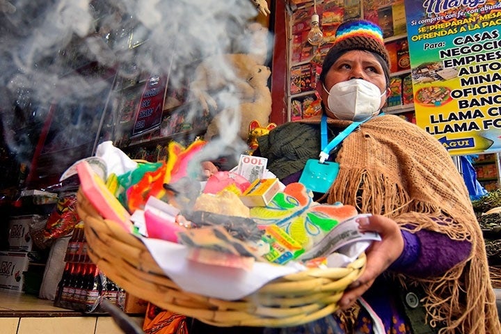 ボリビアでは、様々な時期にパチャママへの祭壇を築きますが、その1つの機会として挙げられるのが「毎月第一金曜日」です。パチャママとは、「母なる大地」を象徴する神のことを言い、パチャママへの捧げ物はアンデス文化の伝統的な慣わしです。パチャママへ供物を捧げることは、大地が与えてくれる生命や天然資源への感謝の形であり、自然と調和のとれた関係を保つ方法のひとつでもあります。