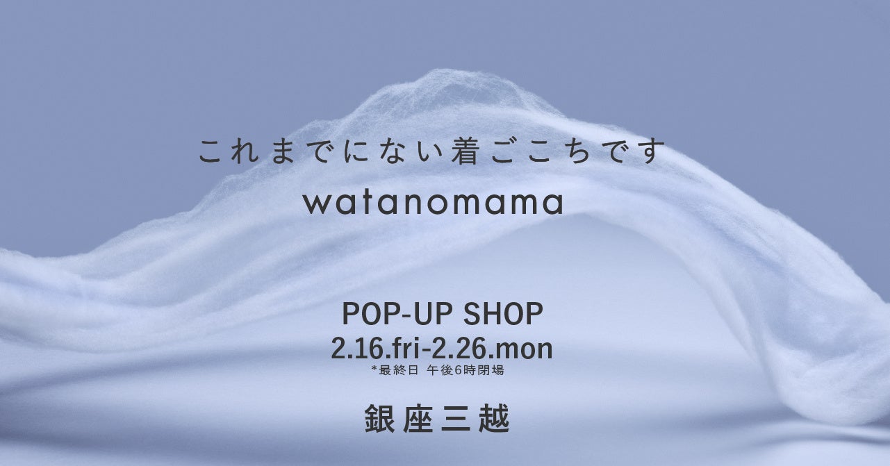 銀座三越には今回で2回目の出店となるwatanomama。これまでにない軽やかでふんわりとした着心地が人気のパジャマの他、今の季節にぴったりの新作から春を感じるアイテムまで取り揃えております。