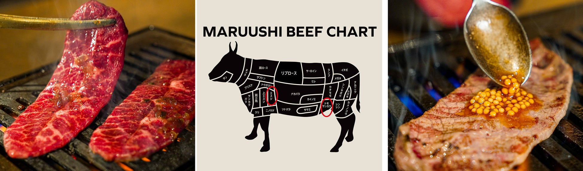 黒毛和牛のルーツだと言われる但馬牛(たじまうし)。この血統の牛にオーストラリア産ホルスタインを掛け合わせた牛が「オーストラリアWAGYU」です。黒毛和牛の柔らかい肉質と脂の甘さ。そこにオーストラリア牛の赤身の溢れるほどの旨味。日本とオーストラリア牛の良いとこ取りをした“ハイブリッド牛”を、銀座でNO.1のコスパ焼肉店を目指す『マルウシミート』でお愉しみください。