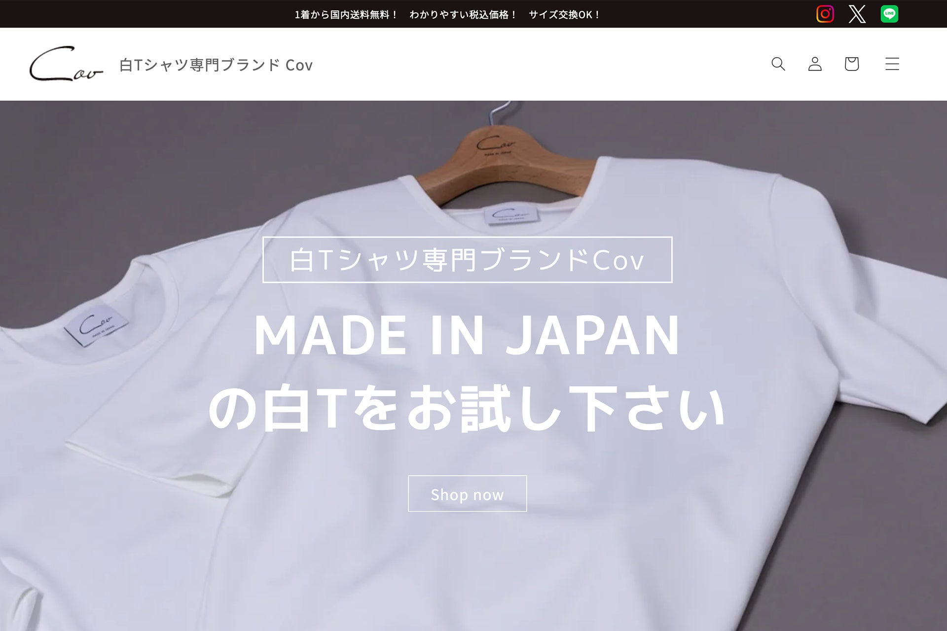 白Tシャツ専門店ブランドCov公式サイト:https://cov.jp/