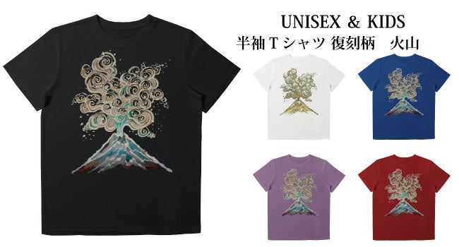 勇ましい火山からモクモクと噴煙が立ち上る。和柄の特徴を生かしたデザイン。
