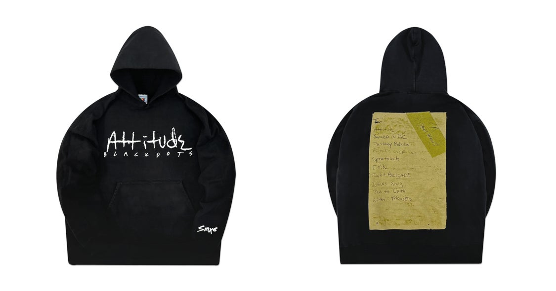 本コラボレーションアイテムは、©SAINT MxxxxxxデザイナーであるCaliが最初で最後に観に行ったBad Brains(バッド・ブレインズ)のライブのストーリーから着想を得ています。’80年~’90年代当時のハードコア・パンクのライブでは、ストリートギャング抗争が頻繁に勃発しており、主にスキンヘッズとネオナチスキンズとの乱闘がステージ上でもステージ下でも発生していました。’89年にL.A.で開催されたBad BrainsのツアーのフロアでスタンバイしていたCaliは、1曲目が始まったと同時に囲まれていたスキンヘッズ達と共にステージ前にあった鉄製のバリケードにダイブし、肘を骨折してしまったが、ライブの高揚感により、痛みを感じることなく最後までライブを楽しんだという当時のエモーショナルなストーリーと、同バンドのマスターピースを冠したBlack Dots。両者のアティテュードを込めて製作されたアイテムをリリースいたします。コラボレーションアイテムのバックプリントには、当時Bad Brainsが使用していたライブのセットリストのフォトが採用されました。