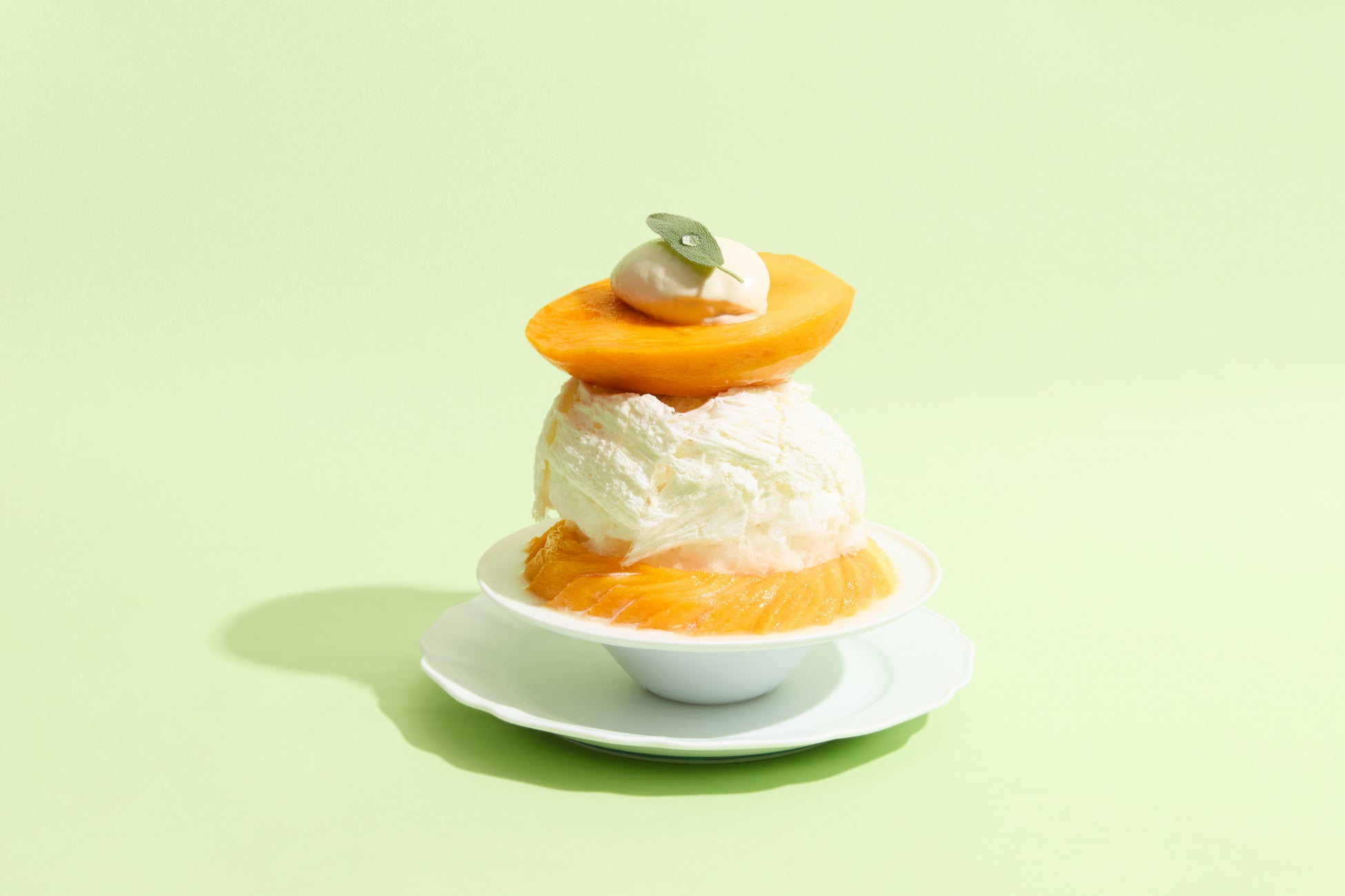 ミルキーなヴィーガン練乳とRAWホイップクリームそして完熟したジューシーでとろけるマンゴーを丸々1玉使用。氷の中には濃厚なマンゴーソースとなめらかなココナッツミルクゼリーを合わせ、最後のひと口まで南国気分を味わえる1皿となっております。
