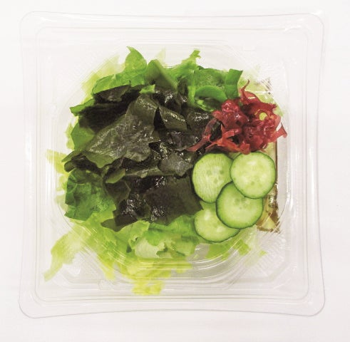 【内容】大根・わかめ・ミニトマト・グリーンリーフ・コーン・紫玉ねぎ・きゅうりの7種の具材を使用したサラダです。主食との付け合わせとしてもお買い求めいただきやすい商品です。