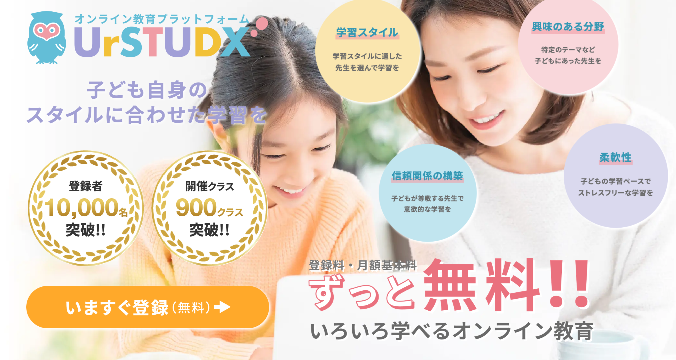 「UrSTUDX(ユアスタディクス)」は、未就学児~大学生の子ども達が、自身の学びたいスキルを、オンライン上で学ぶことができる、教育プラットフォームです。