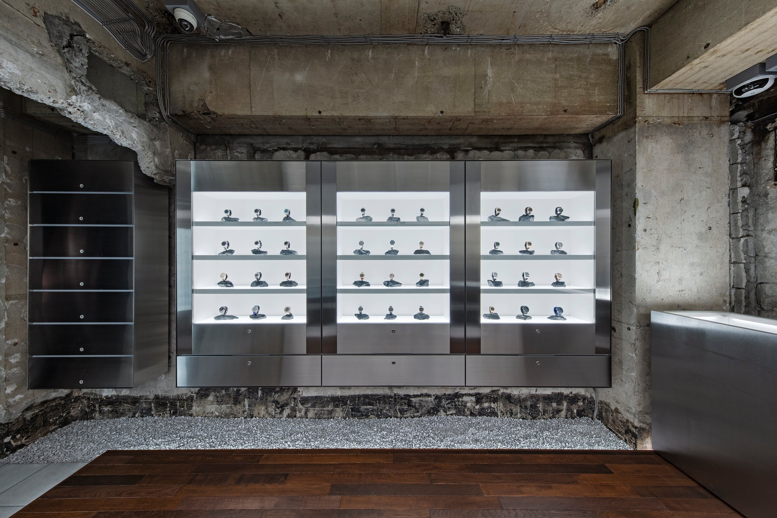 「ASKWATCH」は「ロレックス(ROLEX)」や「パテックフィリップ (PATEK PHILIPPE)」、「オーデマピゲ (AUDEMARS PIGUET)」などを中心に希少性の高いモデルのみを取り扱う時計専門店として2021年7月に新宿にオープンしました。内装設計はKENTA NAGAI STUDIOの永井健太が担当。むき出しのコンクリートを基調とした店内に、天然の造形物である石と人工の構造物である時計のコントラストを表現したデザインとなっております。その内装のデザイン性の高さから海外の権威あるデザイン系メディア「FRAME」や「designboom」など数多くの媒体で評価され、今年には「FRAME AWARDS 2022 Multi-Brand Store of the Year」のショートリストの最終五組にノミネートされました。