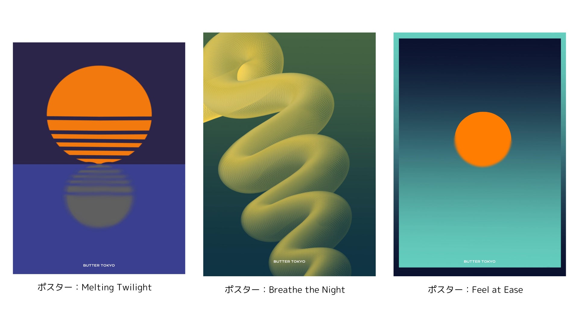 ポスターはBUTTER tokyoのスタッフである yayoi jishage が制作。BUTTER tokyoが大切にしている自然や雰囲気、それらをつなぐ媒介であるシーシャからインスピレーションを受けた作品となっています。