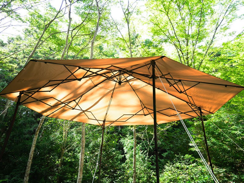 アウトドア初心者でも感覚的に設営できるシンプルなワンタッチ構造ながら4~5人で広々とくつろげる日陰を確保。
