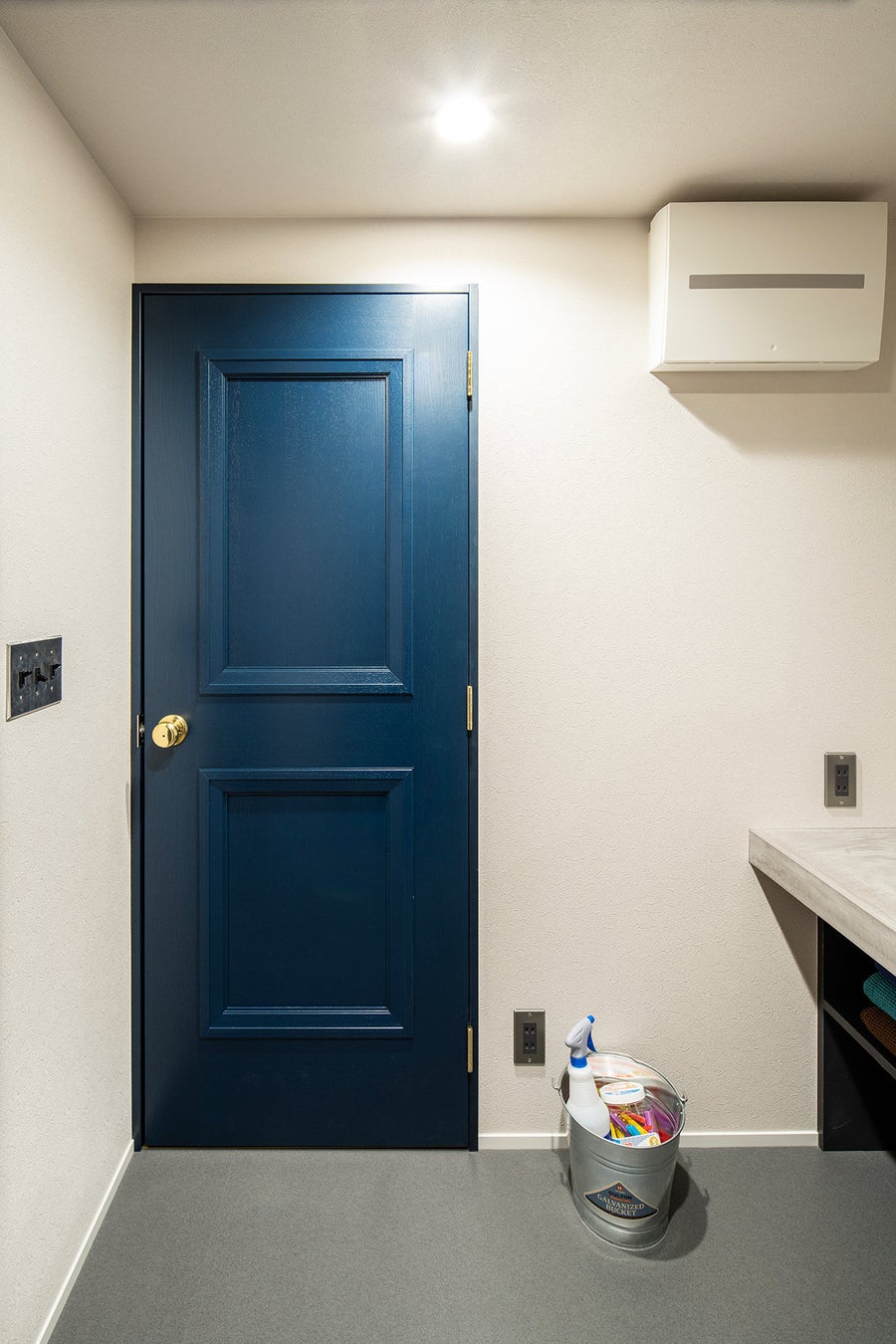 オリジナル珪藻土壁材をアクセントに用い、集中力を高めてくれるブルーを採用。