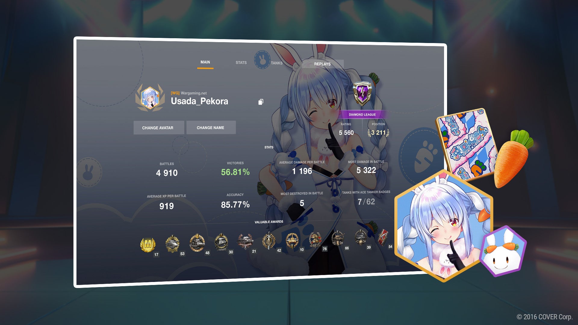期間中は、兎田ぺこらさん、獅白ぼたんさん、博衣こよりさん、クレイジー・オリーさん、古石ビジューさん、そしてFUWAMOCOさんら、 VTuber事務所「ホロライブプロダクション」に所属するタレント7名がゲーム内に登場します。合計60段階のレベルで構成されるゲーム内イベントに挑戦すると、アバター、迷彩、プロフィール背景といった彼女たちをモチーフにした各種アイテムや、ガレージ・アトリビュート「ホロライブ事務所」、《Foch (155)》専用の伝説迷彩「ホロブリッツ・カラー」などの「ホロライブプロダクション」全体を象徴した限定アイテムが手に入る仕組みとなっています。