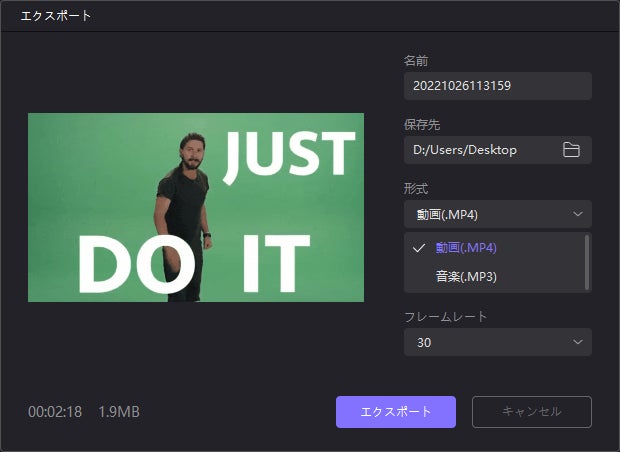 「エクスポート」ボタンをクリックすると、GIF to MP4への変換が完了します。