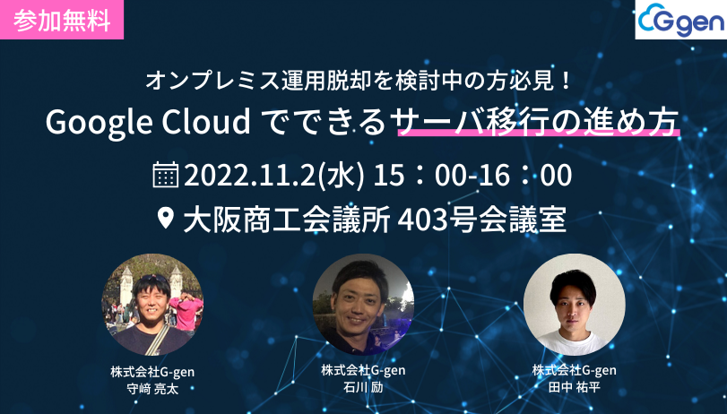 株式会社G-gen、大阪でオフラインセミナー「オンプレミス運用脱却を検討中の方必見!Google Cloud でできるサーバ移行の進め方」を開催