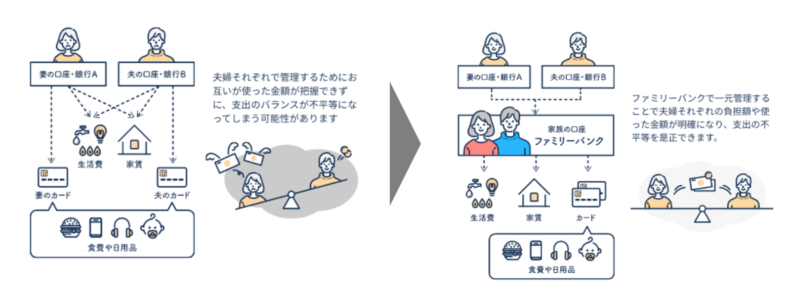 家族向けスーパーアプリ「ファミリーバンク」にて、共働き夫婦のお金の偏りをなくすクレジットカードの提供を開始