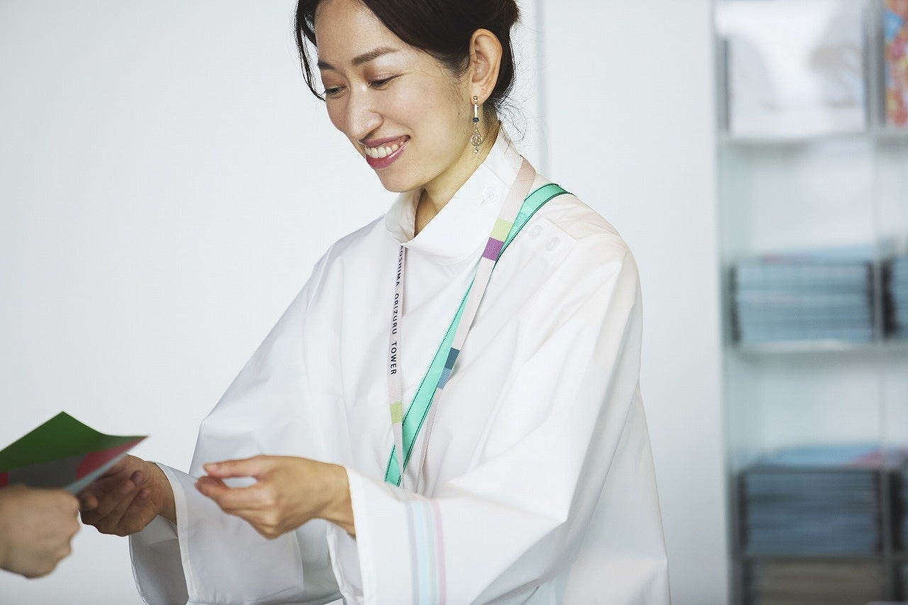 折り紙と鶴をコンセプトに訪れる人も、働く人も、おりづるタワーの世界観を感じられるユニフォームに