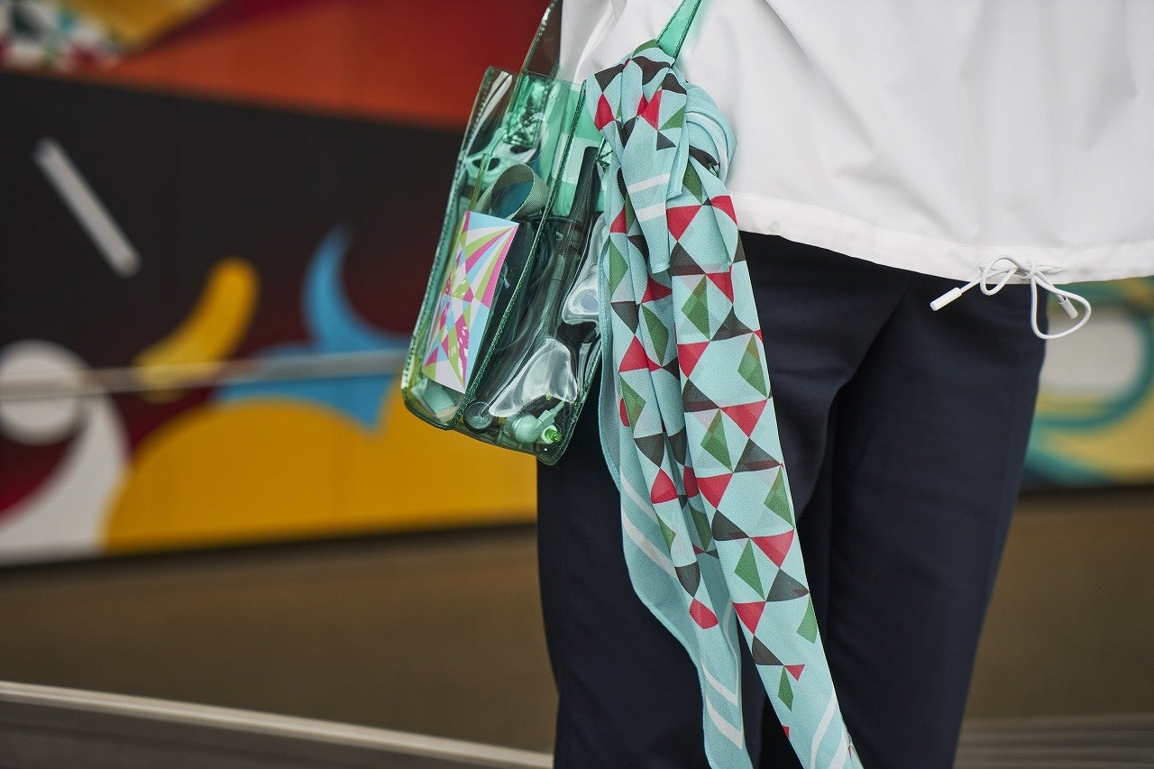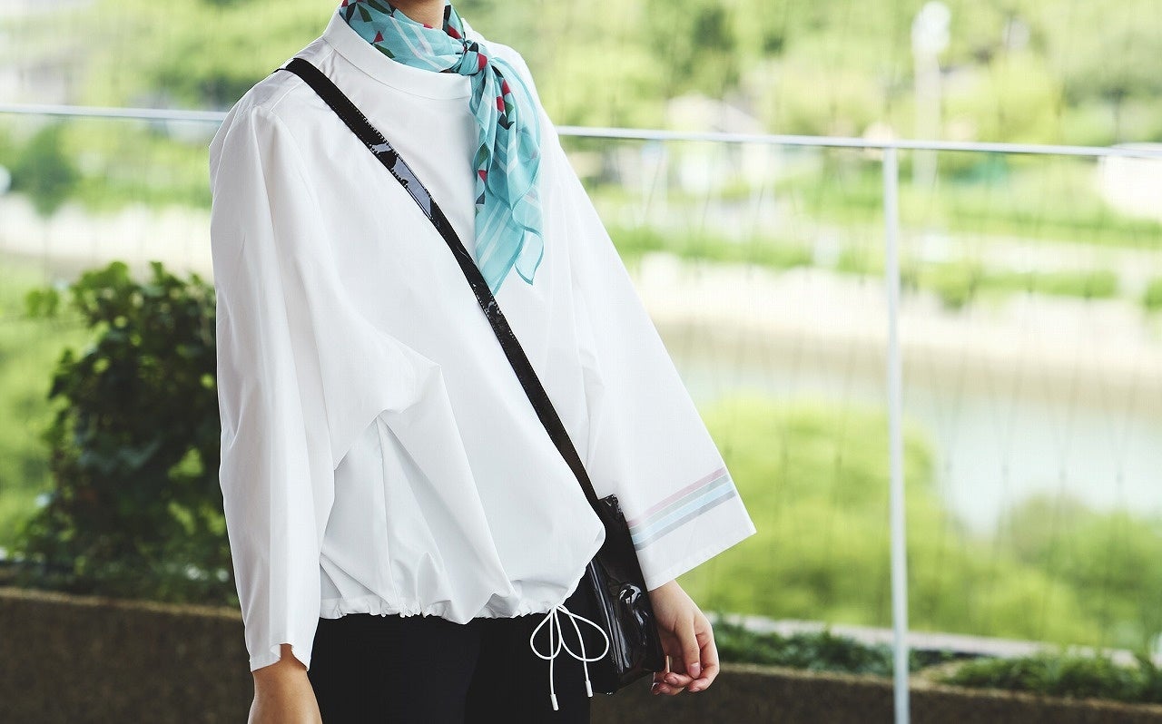 折り紙と鶴をデザインコンセプトに、シャツやアイテムを作成しました。全8アイテムの中から、一人ひとりが好きなアイテムを自由に選び、インナーやボトムスなど自身の私服を組み合わせることで、自分らしく接客ができるスタイルに。袖を広げると鶴の羽の様になるデザインや、折り紙をイメージした直線的なデザインなど、おりづるタワーの世界観を感じられる要素が散りばめられています。