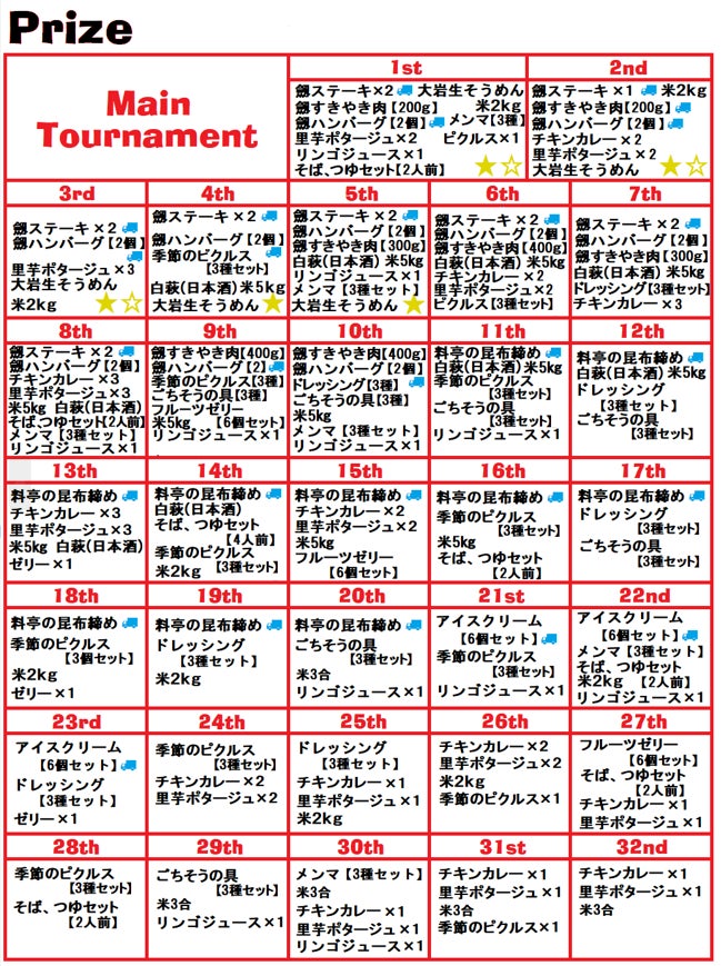 ■上市町の特産物を中心としたメイントーナメントの賞品、イメージ