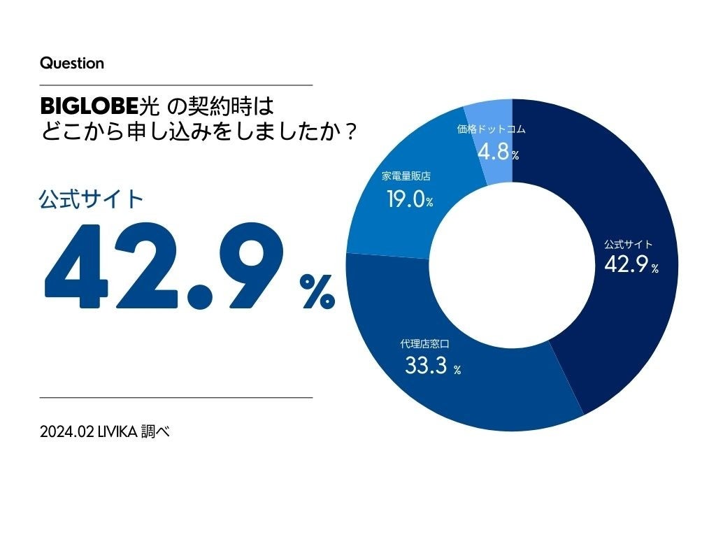 ・BIGLOBE光の契約は「公式サイト」42.9%