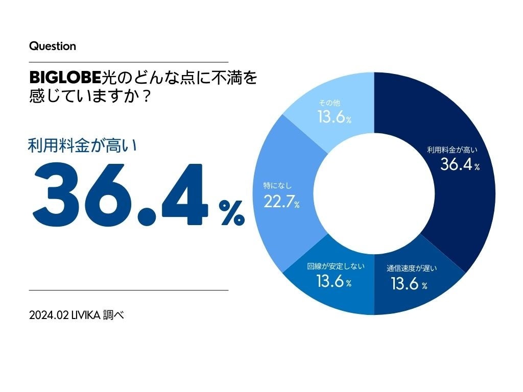 一方で不満点は「料金が高い」が36.4%で最多で、「通信速度」「回線の安定性」に関する要望も一部挙げられました。